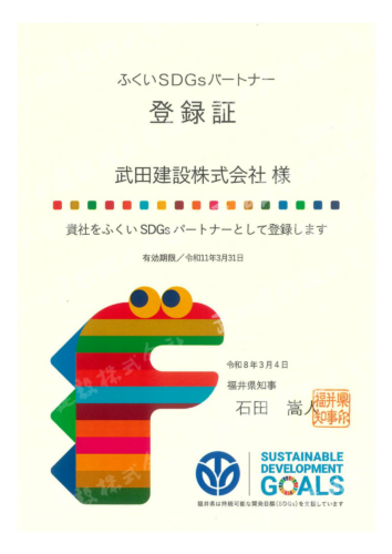 「ふくいSDGsパートナー」の継続更新登録を行いました。